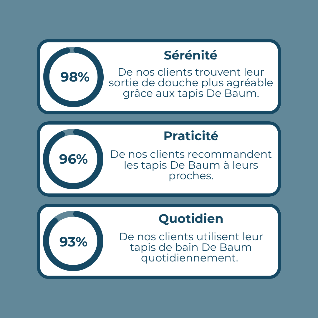 Notre tapis est fabriqué en 100% microfibre de qualité supérieure, reconnue pour sa douceur, sa capacité d’absorption et sa durabilité.